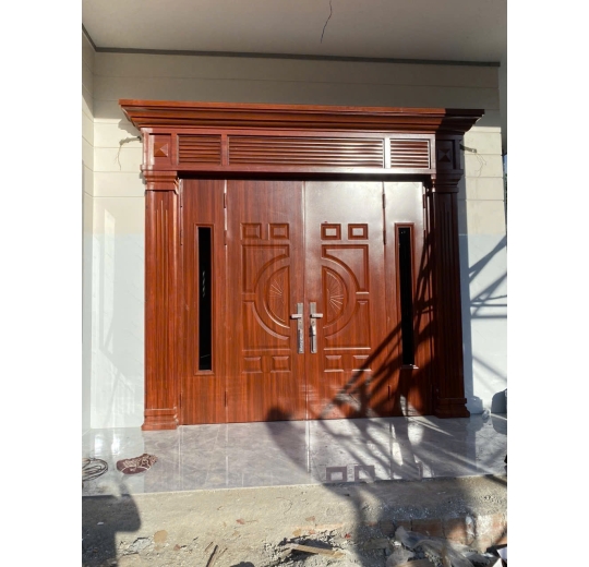 Mẫu cửa đi thép vân gỗ 4 cánh cao cấp sơn roman đồng Đắk Lắk